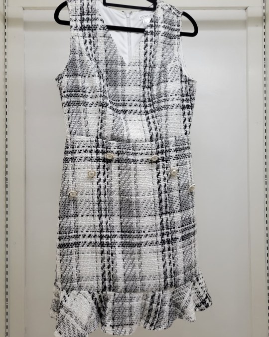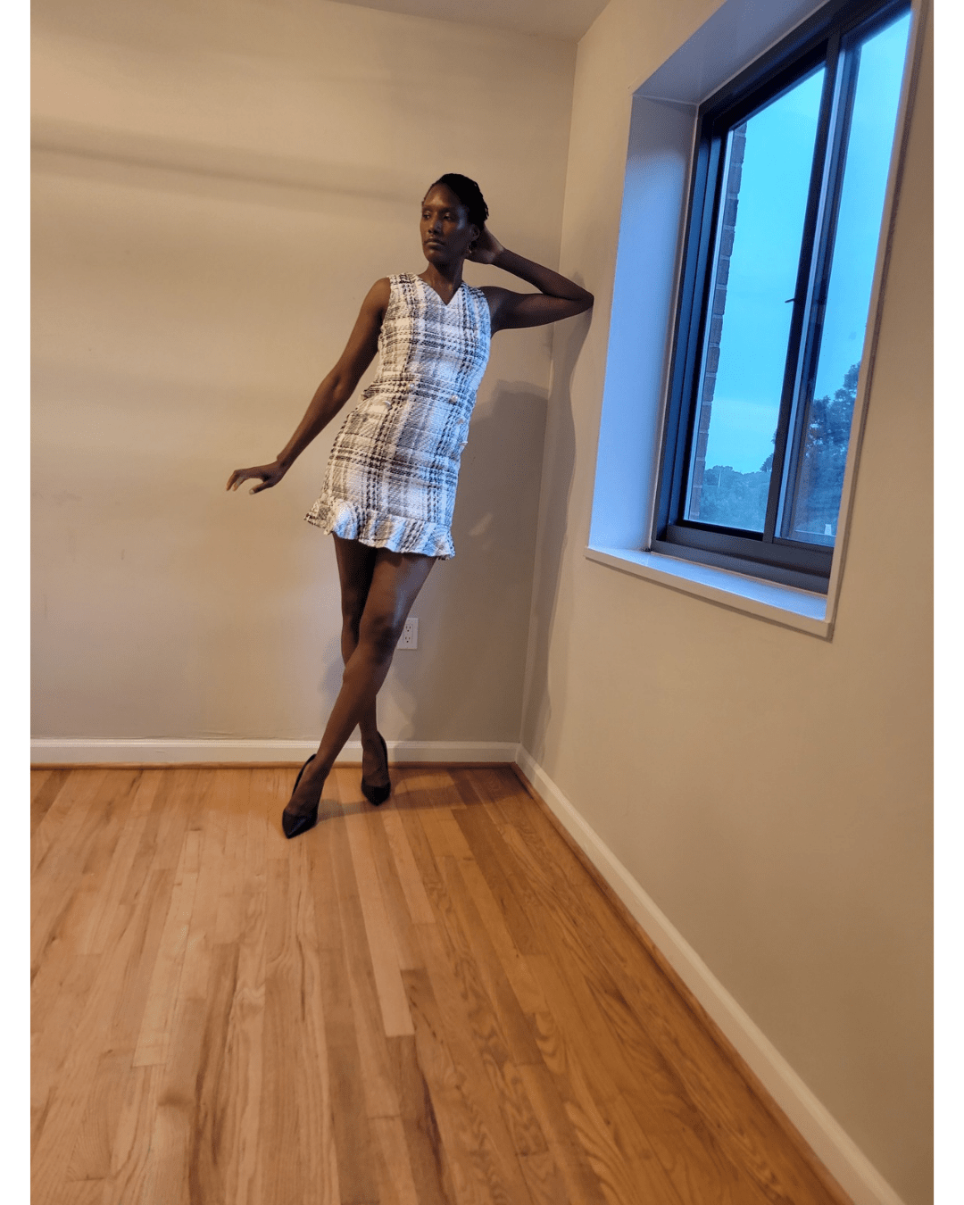 Redefine modern professional elegance with our Venus Tweed Sheath Dress. Crafted from a rich, textured bouclé in a timeless monochrome plaid, this dress is designed for the woman who leads with style. Featuring a sophisticated V-neckline and a playful ruffled hem, it offers a structured silhouette that doesn’t compromise on personality.