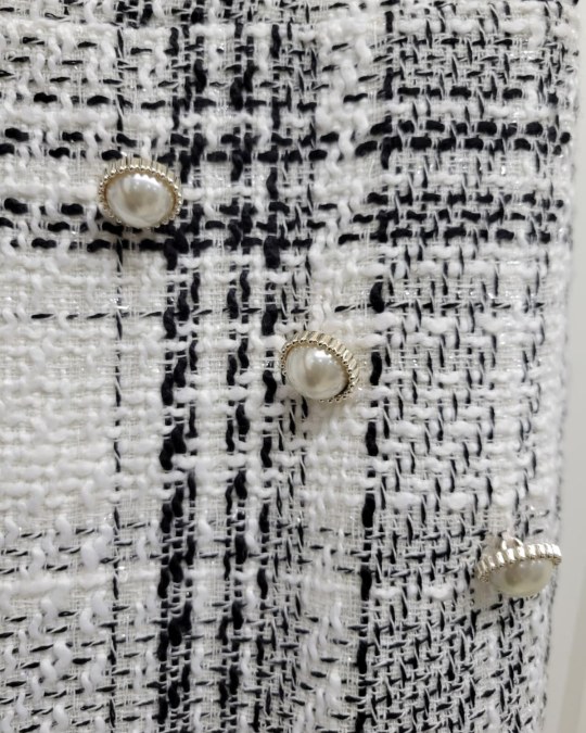 ​Details: Decorative pearl buttons on the bodice and pockets for a touch of “soft power” elegance.
